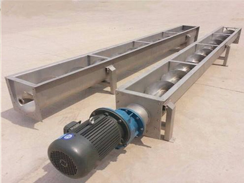 一般情況下,出廠總裝時將螺旋輸送機中間節(jié)按長度長短依次排列,長的中間節(jié)靠近頭節(jié),相同長度的中間節(jié)則挨在一起,如果有特殊要求,則在訂貨時給出排列順序。在螺旋輸送機頭節(jié)內(nèi)裝有支推軸承承受軸向力,在中間節(jié)和尾節(jié)內(nèi)裝有用軸承支承螺旋軸,此外,在螺旋輸送機尾節(jié)內(nèi)還裝有可軸向移動的徑向軸承以補償螺旋軸長度的誤差和適應溫度的變化。螺旋輸送機螺旋面的形式有實體螺旋(S制法)和帶式螺旋(D制法)兩種。各螺旋軸之間采用法蘭式聯(lián)接, 保證了聯(lián)接軸的互換性,便于維修。螺旋輸送機機蓋為瓦片式并用蓋扣夾緊在機殼上,若需改進密封性能,用戶可自行在機蓋與機殼間加防水粗帆布。 螺旋輸送機進、出料裝置有進料口,方型出料口,手推式出料口,齒條式出料口四種,由用戶在使用現(xiàn)場在機體上開口焊接。